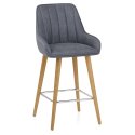 Der Rosa Holzbarhocker vereint Retro-Charme mit zeitgemäßem Komfort. Zwischen modernem Stil und klassischem Design bietet er eine elegante Sitzmöglichkeit für Kücheninseln und Barbereiche. Sorgfältig verarbeitet und robust gebaut, verbindet der Rosa stilvolle Eleganz mit praktischer Funktionalität. Der gepolsterte Sitz und die hohe Rückenlehne sind mit hochwertigem Kunstleder bezogen, das Komfort und Langlebigkeit garantiert. Sechs vertikal abgesteppten Paneele verleihen der Rückenlehne einen dezenten Vintage-Look, während die seitlichen Stützen für sicheren Halt sorgen. Eine paspelierte Kante rundet das Design ab und verleiht dem Hocker eine edle Optik, die jeden Küchenbereich aufwertet. Der stabile Rahmen ruht auf abgerundeten Beinen in warmem Eichenholz-Look. Diese verjüngen sich sanft und werden durch eine satinierte, schwarze Fußstütze in quadratischer Form ergänzt – perfekt, um die Füße entspannt abzulegen. Die Höhe ist festgelegt, doch dank der verstellbaren Füße bleibt der Hocker auch auf unebenen Böden standfest und schützt zugleich den Untergrund. Ein stilvoller Begleiter für den Alltag mit Anspruch.